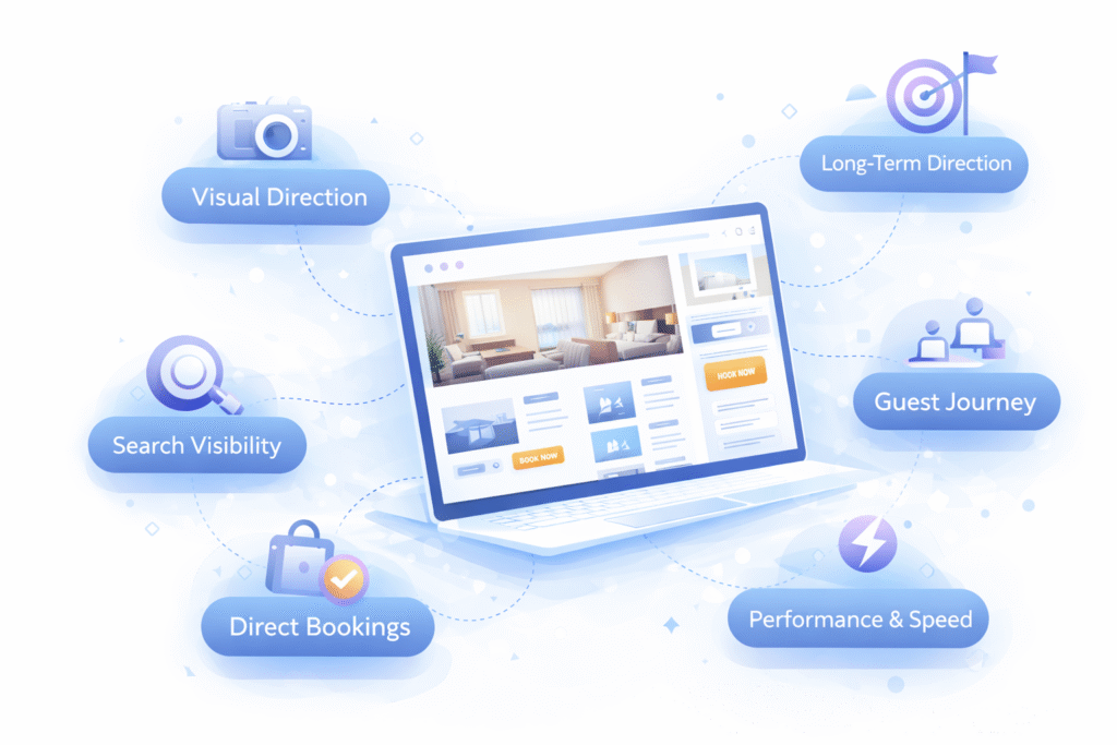 The result is a website that not only presents your property well, but actively supports search visibility, direct enquiries and long-term growth.