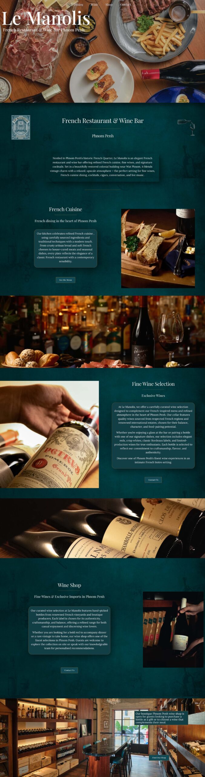 This project involved the design and development of a bespoke website for Le Manolis, a French restaurant and wine bar located in Phnom Penh. The goal was to create a refined, confident online presence that reflects the restaurant’s character, highlights its food and atmosphere, and provides clear, accessible information for both local diners and visitors.